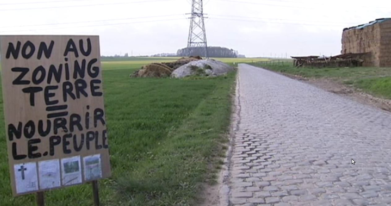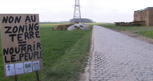– Voir la vidéo sur le site de la RTBF d’agriculteurs qui luttent contre un projet qui va bétonner des terres agricoles près de Courcelles