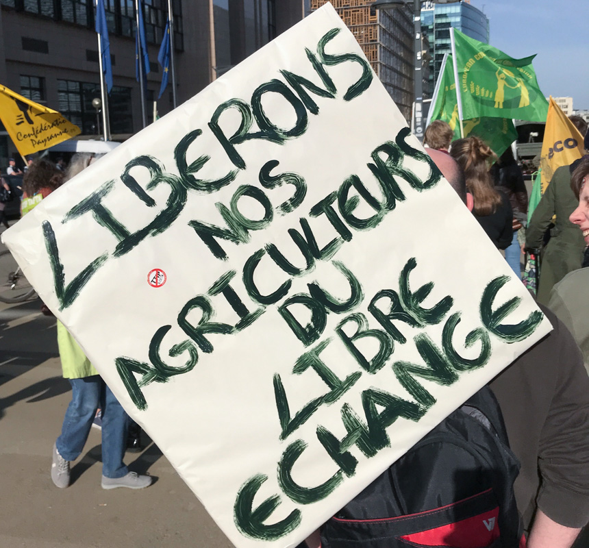 Les paysannes et paysans du monde sont les premières victimes des politiques de « libre échange », la variable d’ajustement et la monnaie d’échange des négociations en cours. Avec La Via Campesina, ils dénoncent aujourd’hui une course effrénée pour produire plus au moindre coût. L’Europe, incapable de réformer profondément une politique agricole commune, injuste et illégitime, d’assurer un revenu digne à tous les travailleurs de la terre, de préserver environnement et climat, prétend résoudre ces défis par l’exportation. Il est grand temps de dénoncer cette supercherie, et d’imposer la souveraineté alimentaire.