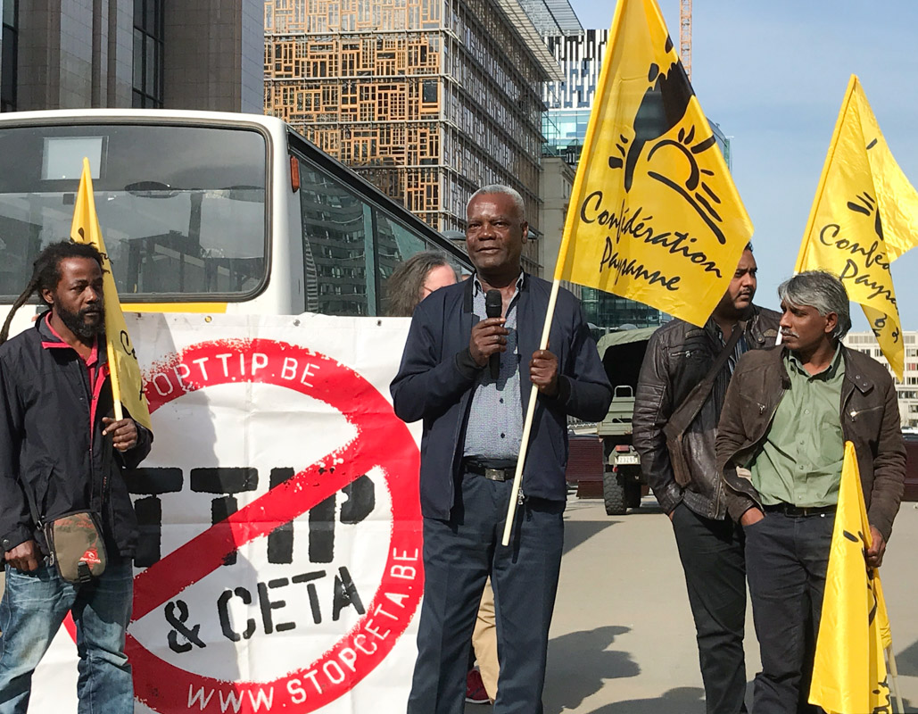 L’ALE négocié actuellement entre l’UE et le Mercosur* est un tel exemple. Au nom d’une illusoire « concurrence libre et non faussée », cette ALE veut imposer des volumes d’importations sans droits de douane : 100 000 tonnes de viande bovine et 90 000 de volaille, entre autres. Un coup fatal pour nous, petits et moyens agriculteurs déjà dans une situation de crise. Mais cette accord généralise aussi le dumping social et environnemental : l’expansion de l’agroindustrie au détriment des communautés paysannes, avec ses impacts néfastes sur les droits des paysans, la déforestation, les monocultures et la consolidation des OGM.