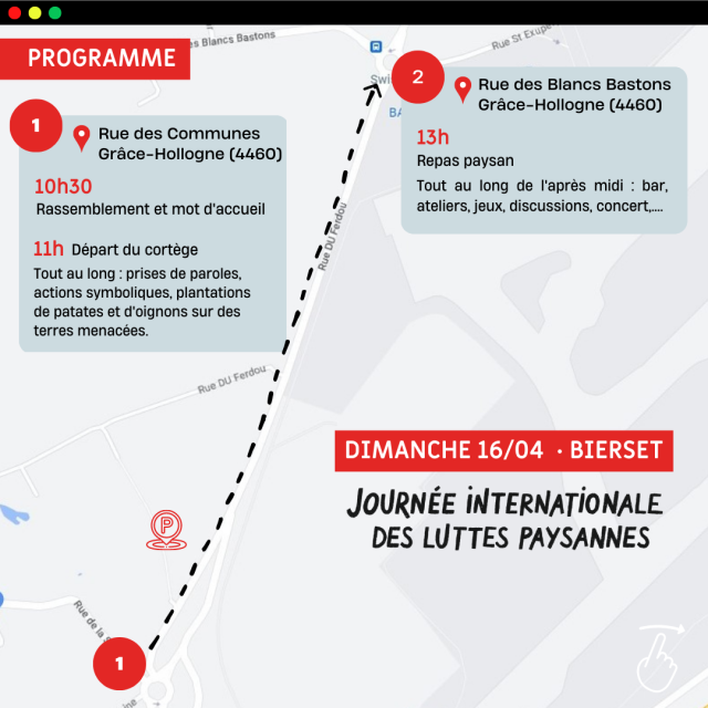 – 12h20 à la Gare Bierset-Awans vers le lieu du rassemblement de l’après-midi